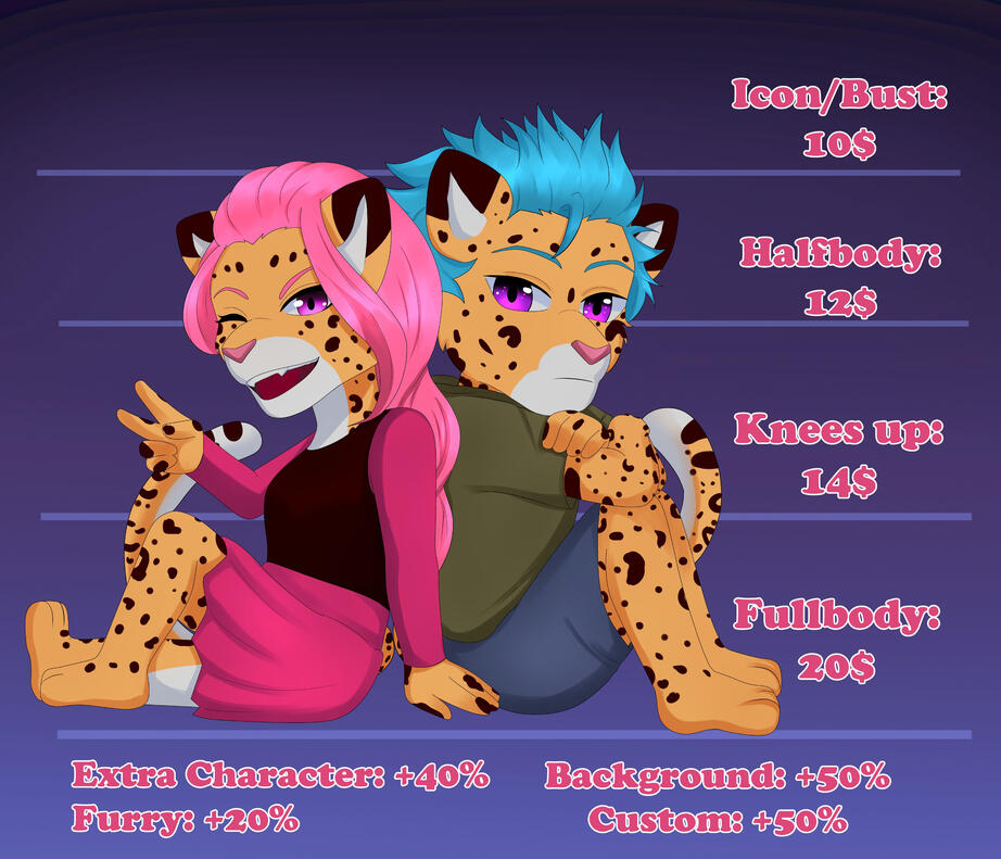 Payment method:✮⋆˙Payment will be by PayPal or Ko-Fi.✮⋆˙Half of advance payment or full payment.✮⋆˙I do not make refunds.✮⋆˙Additional changes after lineart will cost $5.TAT:✮⋆˙Delivery time is 3 to 5 days, it may vary depending on the amount of details.✮⋆˙I will be in charge of informing you if there is any problem with the delivery time of your commission.Conditions:✮⋆˙Send references (expressions, poses, etc.) or be very specific with the details of your commission.✮⋆˙I will publish the commission on my networks with its respective watermark.✮⋆˙If you want the commission to be private, the cost will increase by 50% of the original price.✮⋆˙It is prohibited for the client to use their commission for non-fungible tokens, advertising or profits associated with them.✮⋆˙It is not allowed to upload my works to AII Do:✮⋆˙Fanarts✮⋆˙Furry✮⋆˙Backgrounds✮⋆˙Self-insertI Don´t Do:✮⋆˙Realism✮⋆˙Armors✮⋆˙3D works✮⋆˙Animations✮⋆˙Mechas